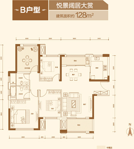 户户三面朝南,板式通透空间