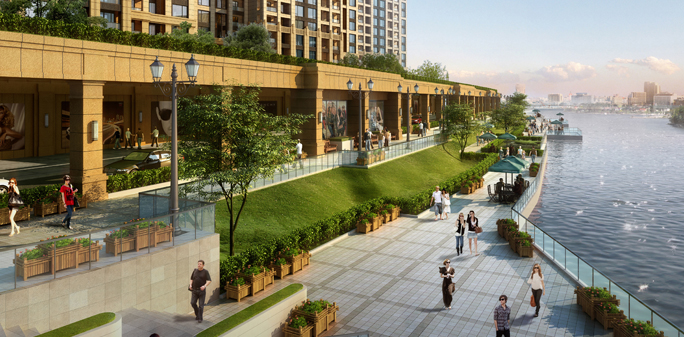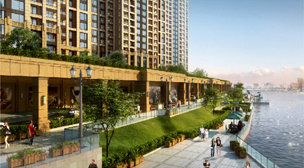 5米台地,梅溪湖没有之一5米整体抬高,三大地块形成完整社区,不受市政道路干扰,成功实现人车完全分流,并形成一个隔绝噪音、杂尘等污染的绝妙分隔符。