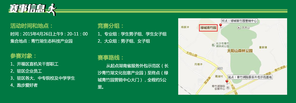 4月26日,以“活力开福领跑三湘”为主题的2015年开福区全民健身节“绿城青竹园杯”健康长跑比赛清新开跑,活动吸引了超过3000人参与,在长沙最“奢侈”的5公里自然生态保护区内,“乐跑族们”在绿城·青竹园一起享受了一场自由与健康的运动盛宴。